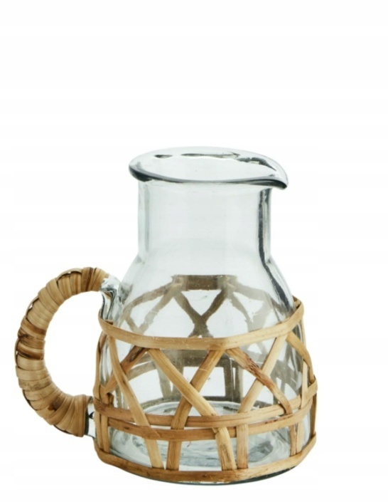 - Szklany dzbanek w naturalnej, bambusowej, ręcznie wyplatanej osłonce.
