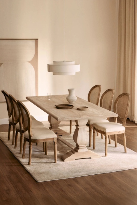 Jadalnia będzie najczęściej odwiedzanym pomieszczeniem w Twoim domu, zarówno na spotkania czy uroczystości, jak i do codziennego użytku z rodziną, dlatego Prostokątny Stół do Jadalni Sanzia (220x100 cm) da Ci możliwość pokazania swojego stylu dekoracyjnego i funkcjonalnego w tym samym czasie. Wykonany jest w 100% z drewna mango, materiału wyróżniającego się połyskiem i trwałością, nadaje stołowi klasyczny i ponadczasowy styl, wraz z nogami, również z drewna mango. To solidna i elegancka konstrukcja, wybór, z którym się nie pomylisz i który sprawi, że dekoracja Twojej jadalni będzie się wyróżniać. Jego wymiary i prostokątny kształt sprawiają, że jest bardzo funkcjonalny, pozwalając na spotkanie nawet 8 osób.