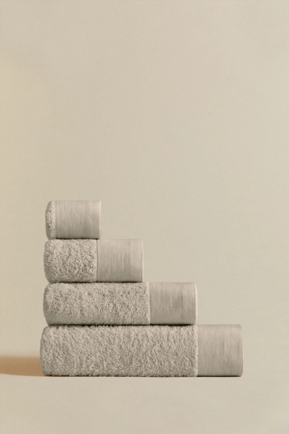 Wyobraź sobie wprowadzenie drobnych zmian w codziennym życiu, które dodadzą Twojemu domowi delikatny akcent luksusu.Ręcznik z bawełny i lnu Markelstanie się idealnym uzupełnieniem Twojej łazienki, dzięki swojejpuszystej teksturze, która oczaruje wszystkie Twoje zmysły. Ten tekstylny dodatek został zaprojektowany, aby zapewnić Ci ciepłe i przytulne uczucie podczas kontaktu ze skórą. Dodatkowo, jegopastelowy odcieńdodaje nuty neutralności i elegancji, która doskonale współgra z dekoracyjnym stylem każdego rodzaju łazienki. Środkowa część ręcznika jestwykonana z wysokiej jakości bawełny frotte, co gwarantujeoptymalną absorpcję i bardzo przyjemny dotyk. Ta równowaga między delikatnością a trwałością sprawia, że jest idealny do codziennego użytku, przewyższając Twoje oczekiwania dotyczące suszenia za każdym razem, gdy go używasz.Boczne lamówki wykonane z lnumają wzór, który dodaje odrobinę stylu i wyrafinowania. Postaw na drobny detal, który nie tylko zadba o Twoją skórę, ale także sprawi, że poczujesz się wyjątkowo po każdym użyciu.